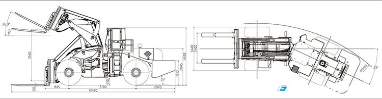 采用單搖臂八連桿提升結構,性能穩定可靠,可叉卸物料含集裝箱達40噸。